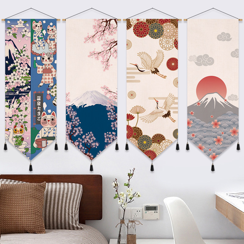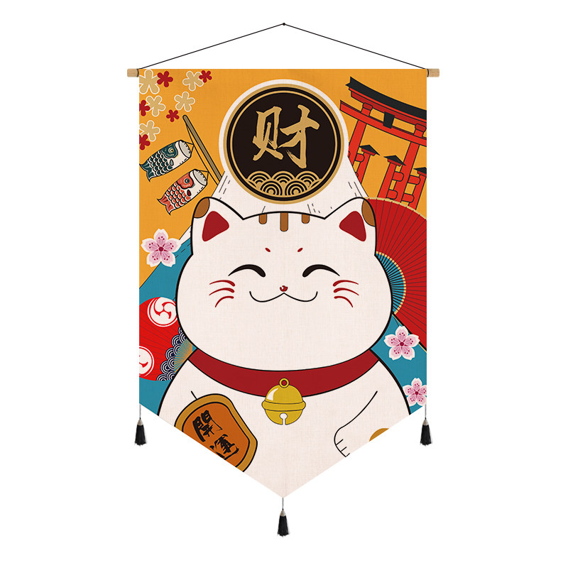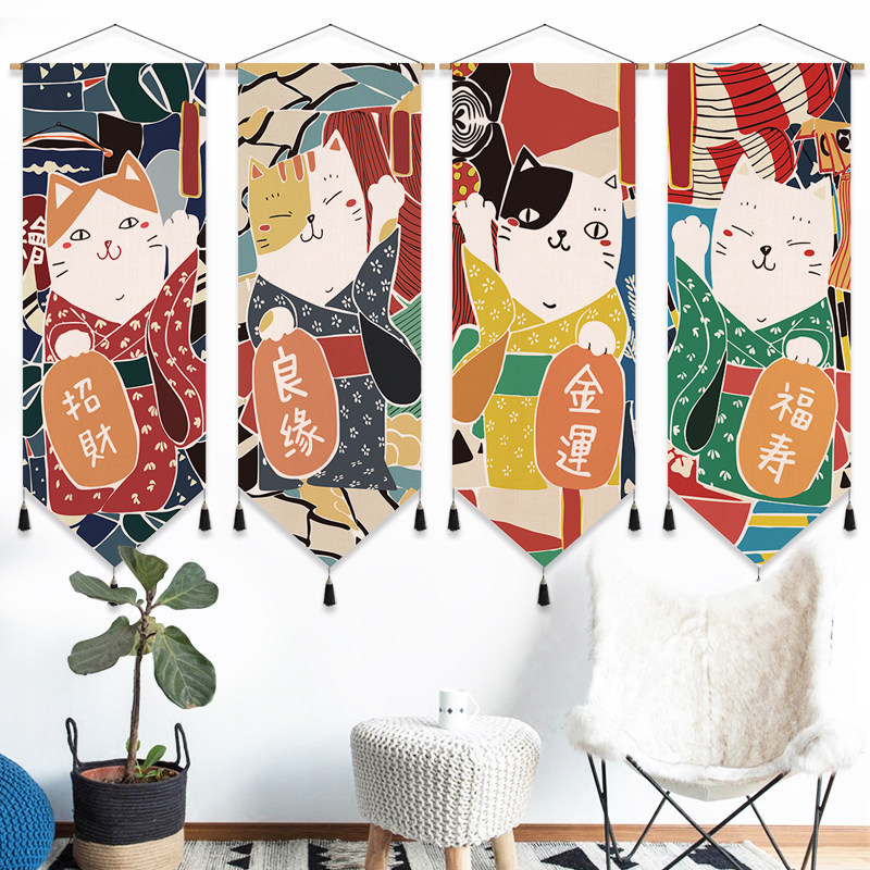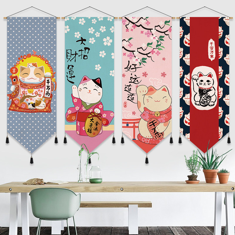 Japanese-style fortune cat fabric hanging painting bedroom dining room decorative painting restaurant hanging flag bedside hanging cloth background wallcloth