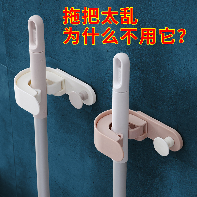 Strong non-perforated mop rack Bathroom mop rack Wall hook storage shelf hanging mop artifact Household
