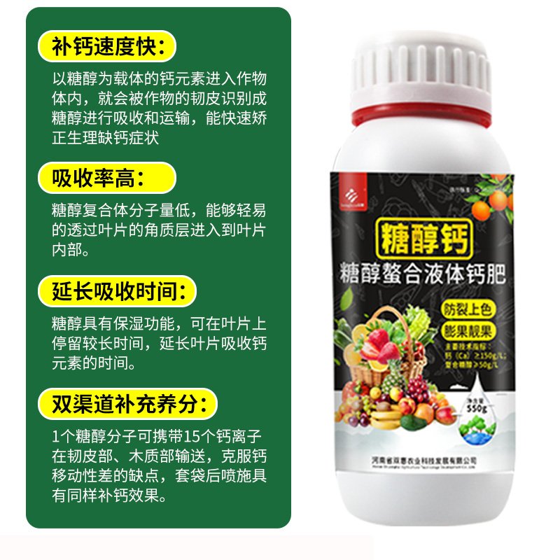 Sugar Alcohol Calcium Foliar Fertilizer Agricultural Calcium Fertilizer Supplement Calcium Fruit Tree Flower Wood Vegetable Grape Citrus Watermelon Strawberry Yield Increase Anti-Crack