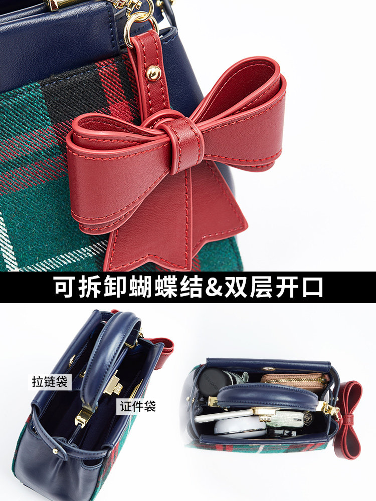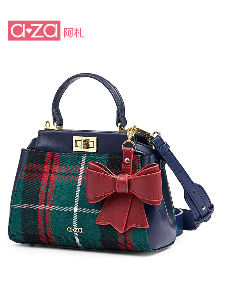 aza single shoulder portable small square bag retro contrast color Messenger bag classic plaid bag bow pendant bag female