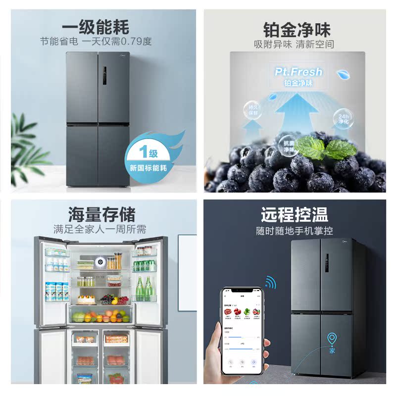 Midea frost-free refrigerator 4 four-door first-class energy-saving home appliances double door double door door 465
