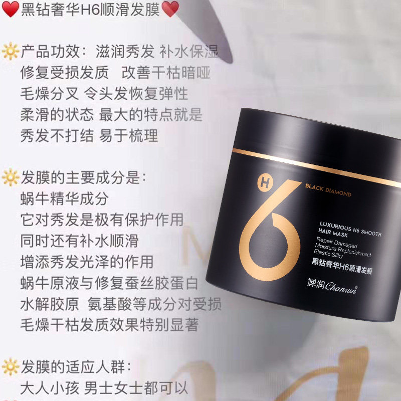 Chan Run Black Diamond luxury H6 smooth hair mask Pour film hydration repair dry improve frizz smooth conditioner
