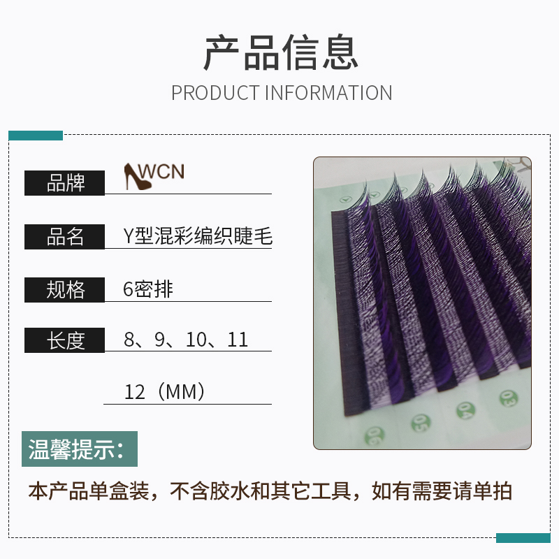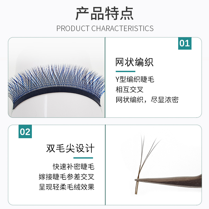Y-shaped mixed color grafted eyelashes, black, purple, black, blue, caramel, three colors, love mesh weaving, blooming in a second