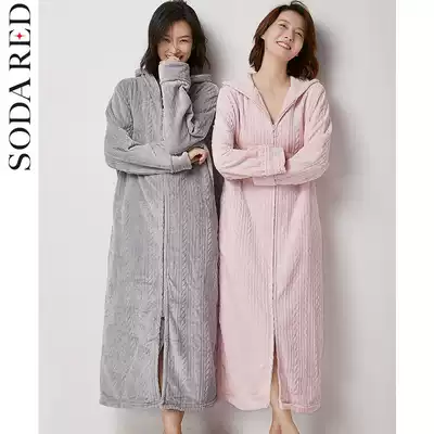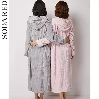 Flannel nightgown women's spring and autumn hooded coral velvet bathrobe Autumn and winter long version thickened warm yukata
