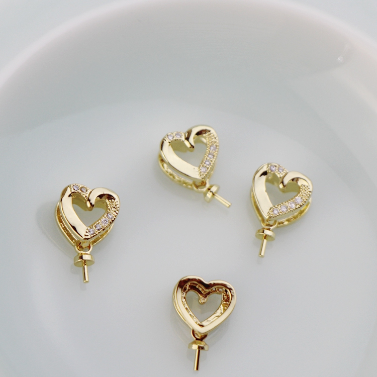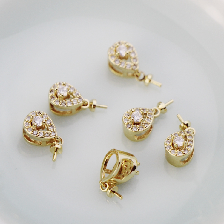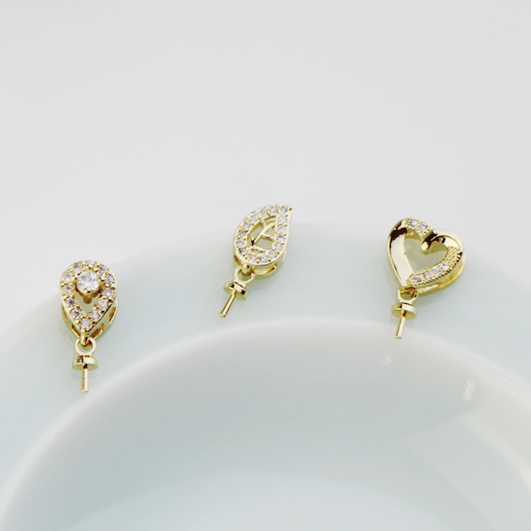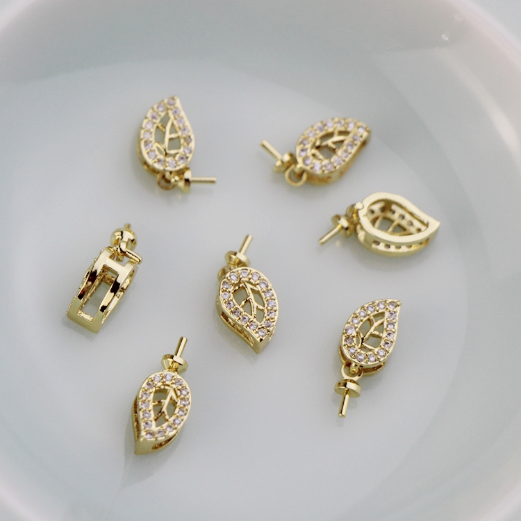 14K bag gold hollow hollow zircon caring water droplet leaves diy half - hole pearl pendant accessories