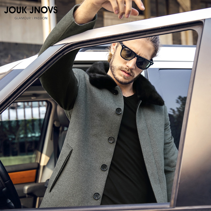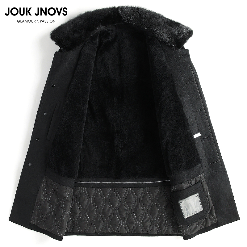 Light extravagant double face wool coat men cashmere winewear lamb suede fur integrated liner ferret fur collar thick coat