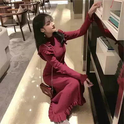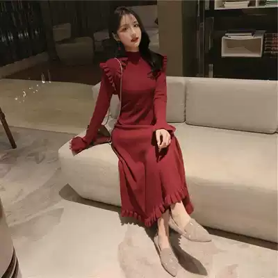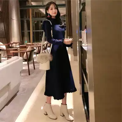 Long skirt with coat children autumn and winter New base long sweater temperament knitted dress over the knee