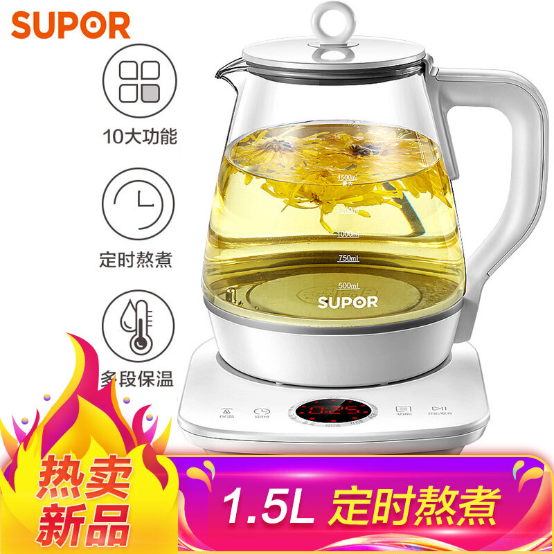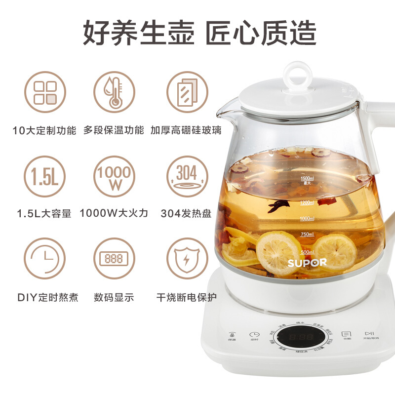 SUPOR supoir SW-15YJ28 health preserving pot boiling teapot glass boiling tea ware quick cooking pot Flower teapot 1 5L