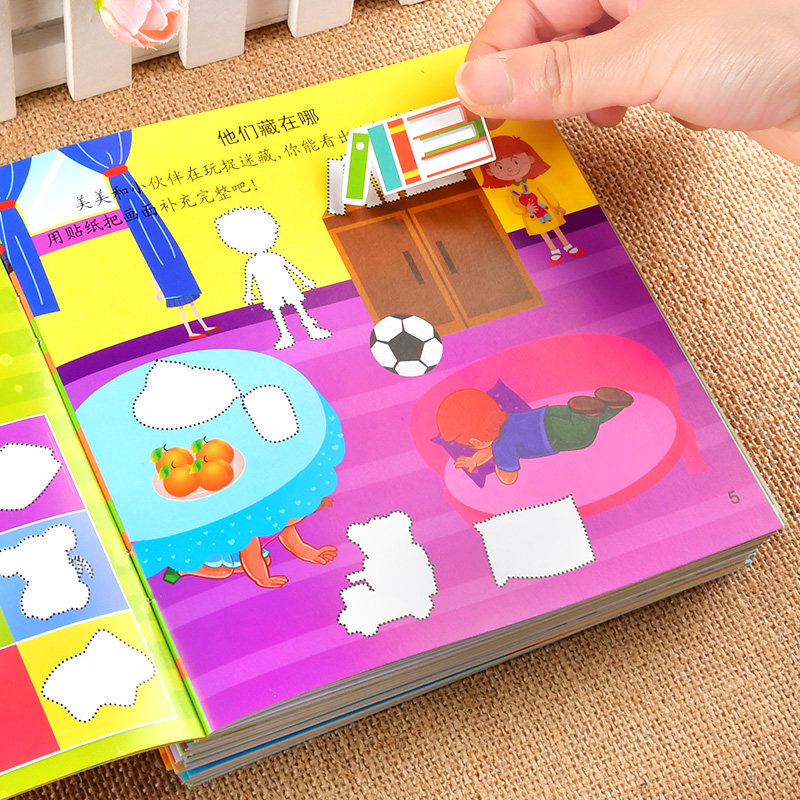 A full set of 16 volumes of concentration training sticker book hands-on brain puzzle book stickers sticker book 2-3-4-5-6 years old children hands-on sticker book fun brain early education books smart sticker book small handbook left and right