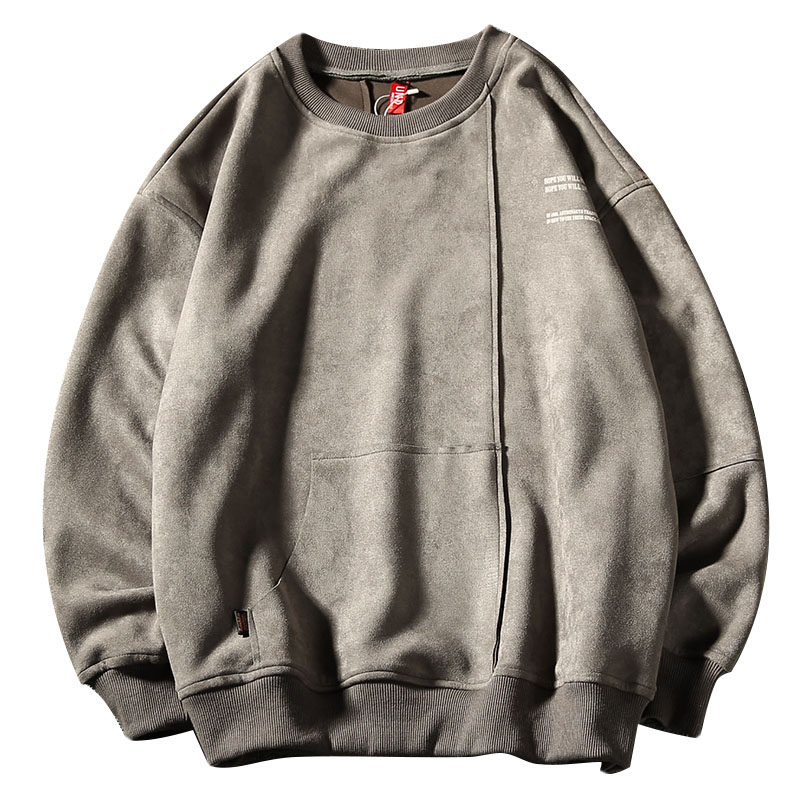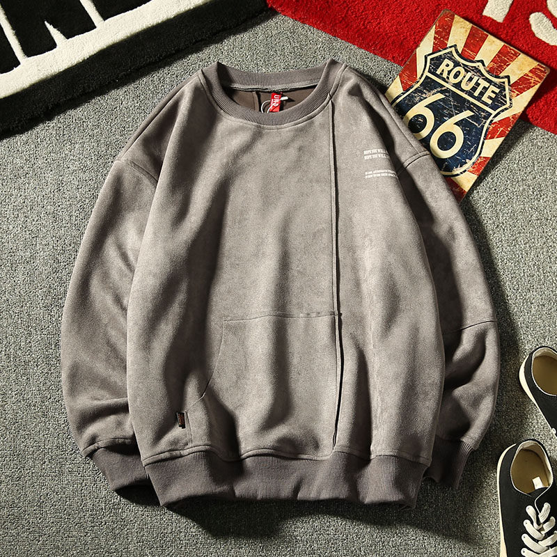 "Yong fearless" autumn tides men's suede printed round collar thick cotton T day department casual teenagers loose blouses
