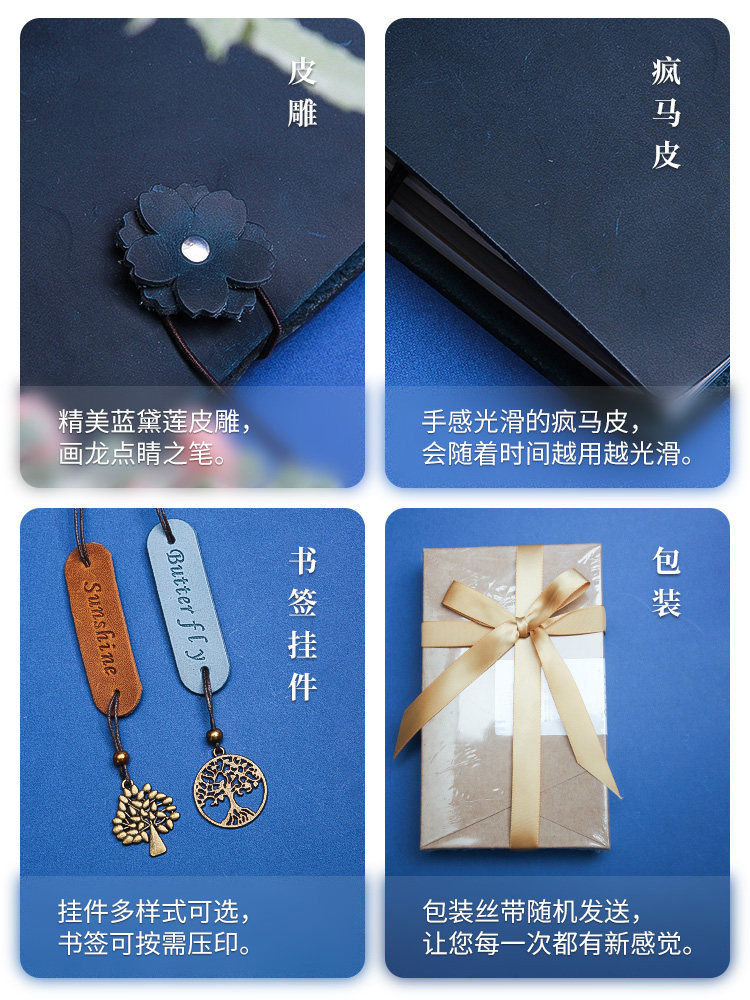 Ink Message Blue Delian Mad ScaresMesh Mesh Mesh Mesh Passport Diary Simple Art Letter Book Gift Packaging Handicrafts Free customization