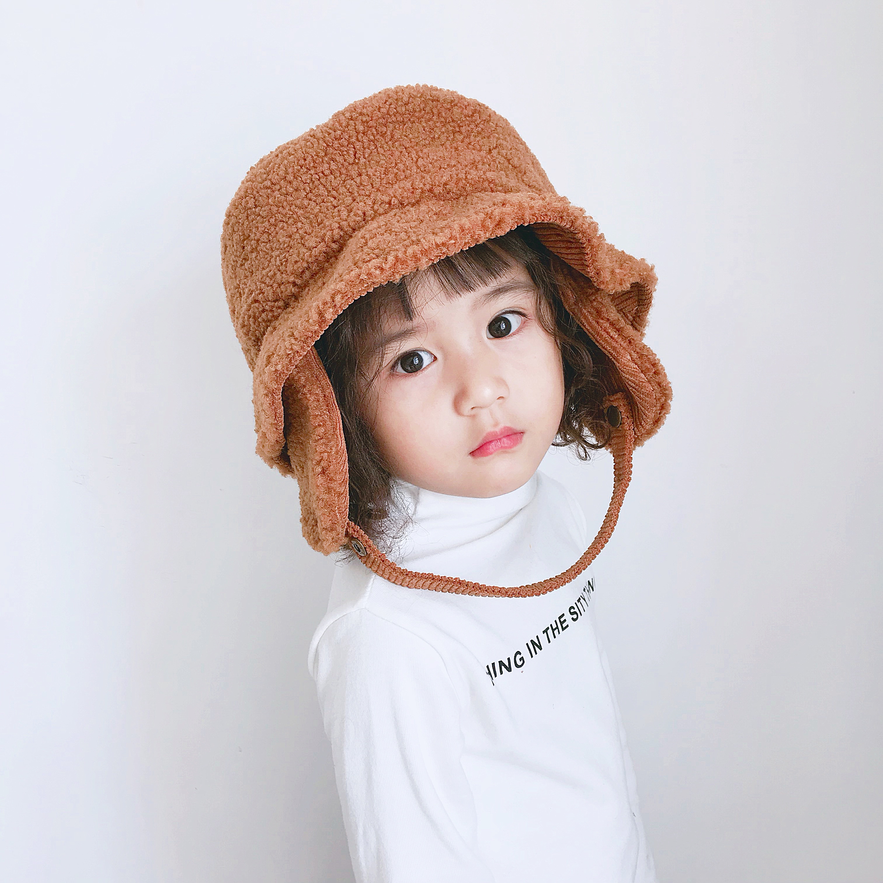 Children hat winter girl's pelvic hat protective ear warm hat thickened with suede baby fisherman hat boy Lei Feng cap tide