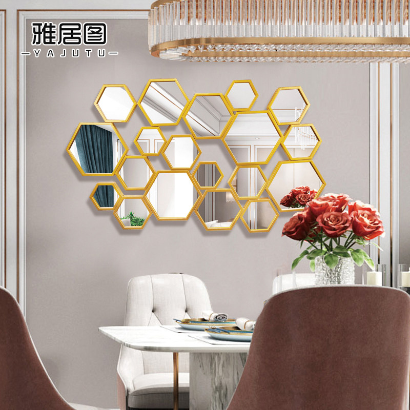 Living Room Dining Room Genguan Background Wall Wall Wall Decoration Hanging Accessories Metal Rhomboid Decorative Mirror Light Extravagant Iron Art Decor Wall Hanging