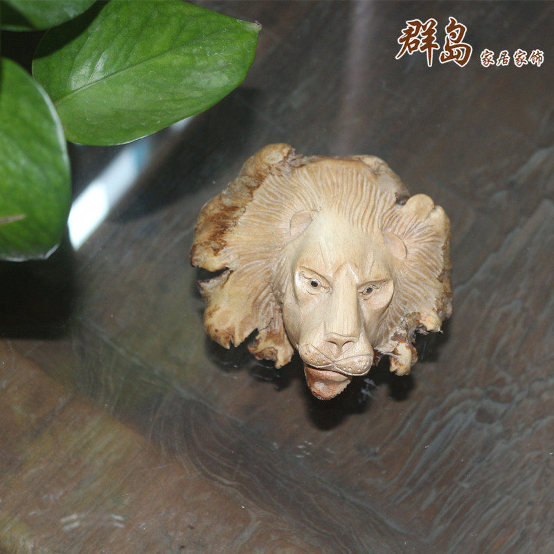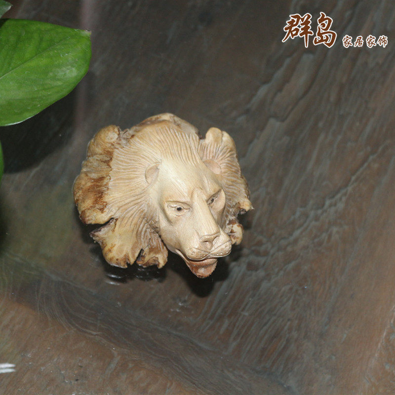 Imported lion solid wood carving animal ornaments Pure hand-made simple home rotting wood decoration craft gifts