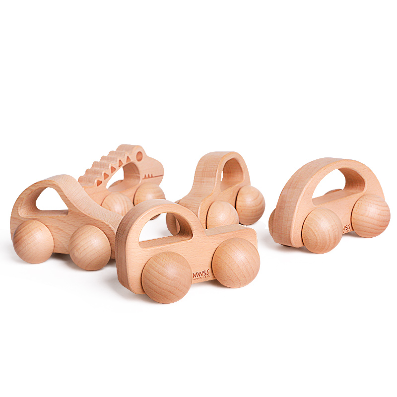 Wood Playing family wood Inertia Car Small Car Infant Baby Grip trolley 0-3-year-old male girl toy