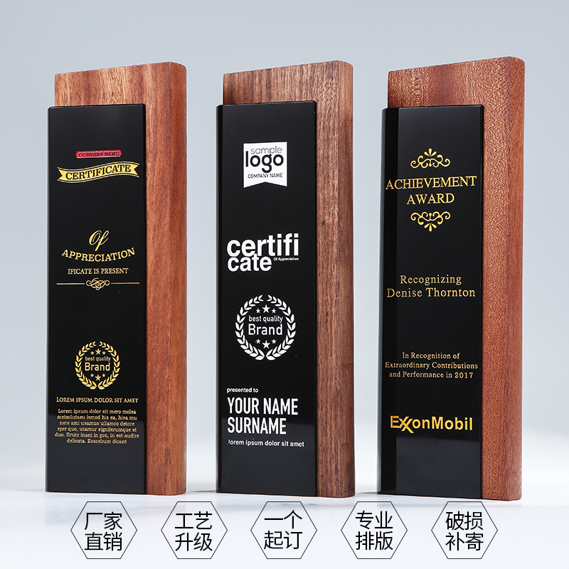 Creative high-grade solid wood trophy custom-made crystal trophy custom outstanding employee enterprise annual meeting award wooden lettering