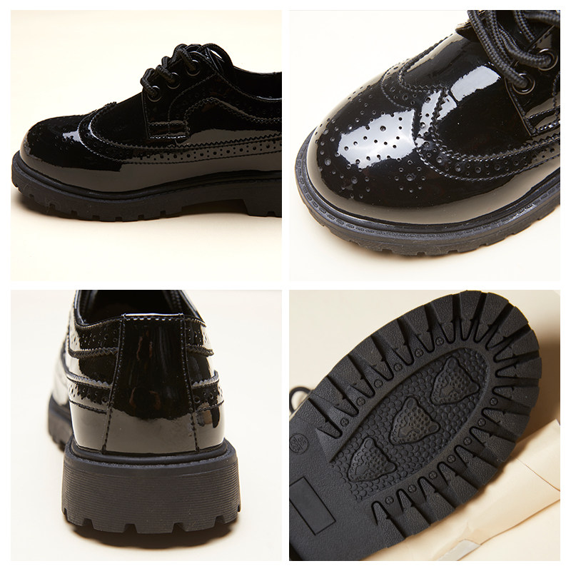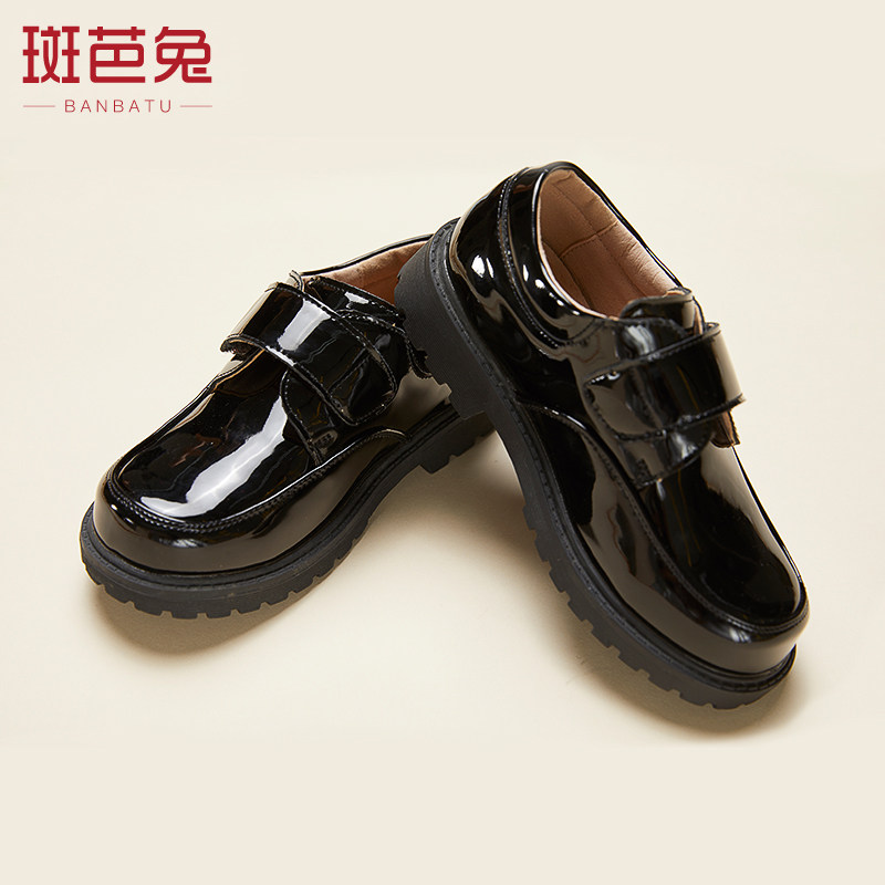 Banba rabbit boy leather shoes children's middle-aged children's youth dress new performance round head black lace-up shoes tide