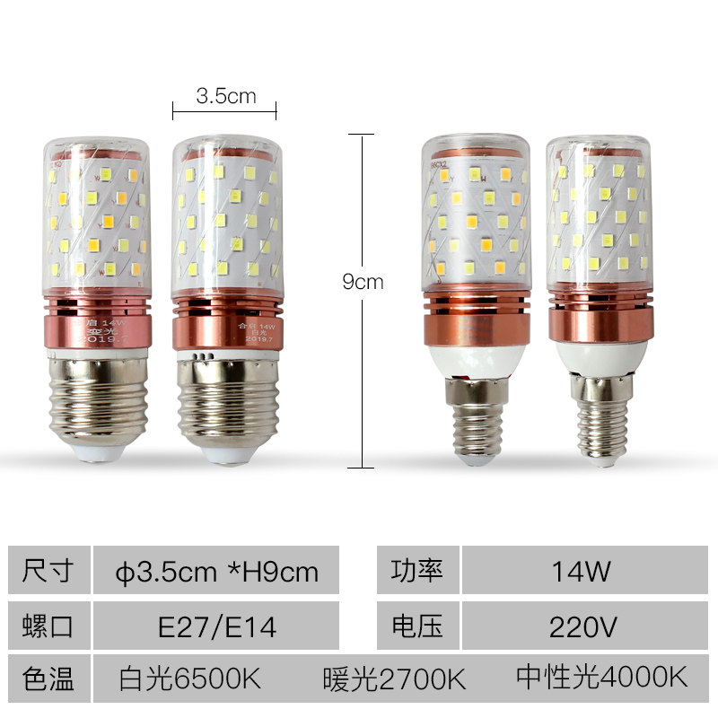 LED bulb energy-saving lamp e27e14 screw chandelier table lamp household white light three-color super bright corn spiral bulb