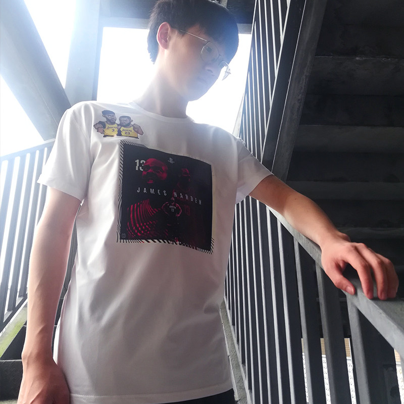 Summer new men's T-shirt James icon personality white slim basketball sports short-sleeved top tide