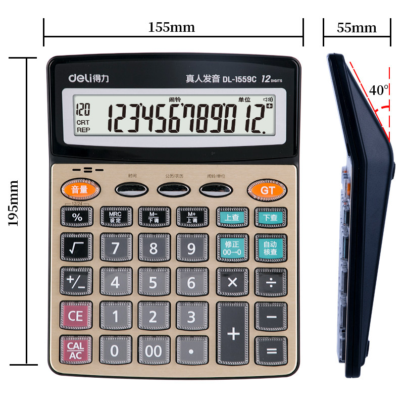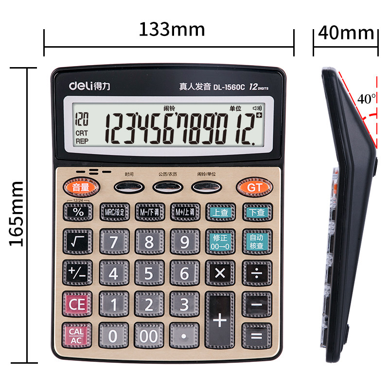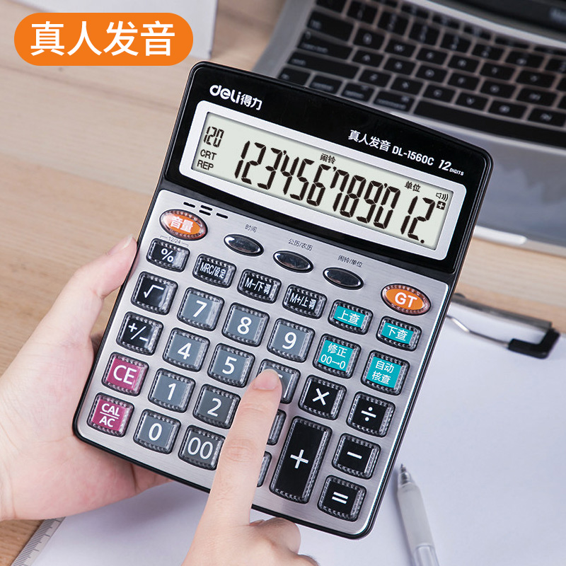 Deli 1654 financial accounting special calculator solar dual power supply office business type large screen large key calculator multi-functional metal panel 12-bit computer 4 rounding 5 rounding function