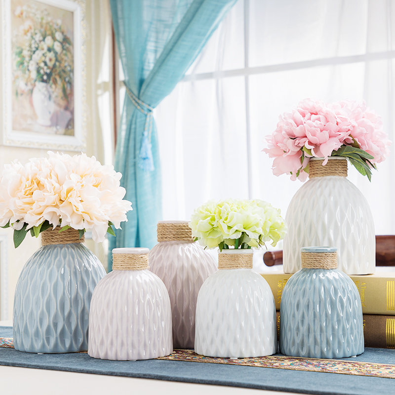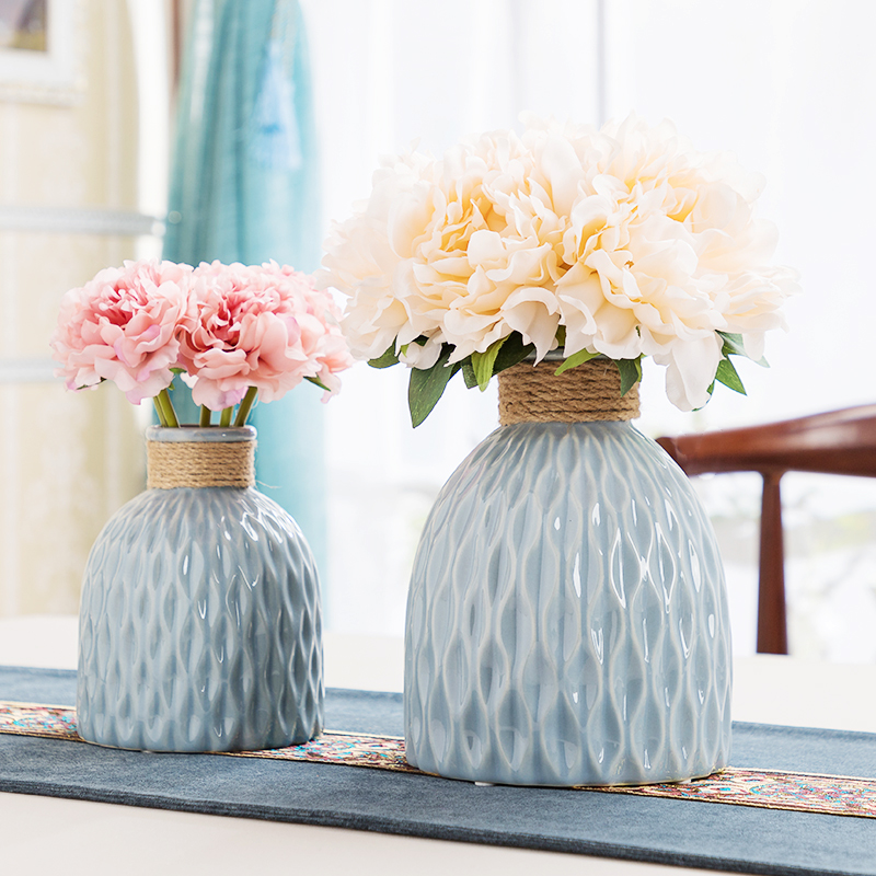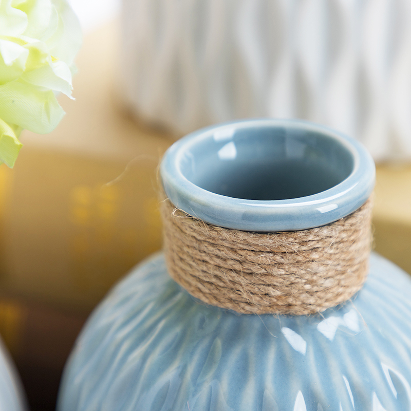 Glazed ceramic vase Wave pattern American retro craft fine mouth table flower arrangement Flower vase Nordic style creative ornaments