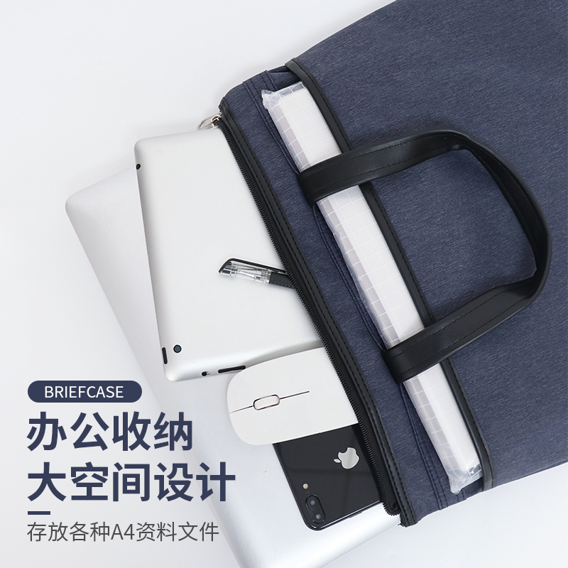 Canvas document bag a4 business office bag Information bag Zipper multi-layer storage bag Waterproof conference briefcase thickened