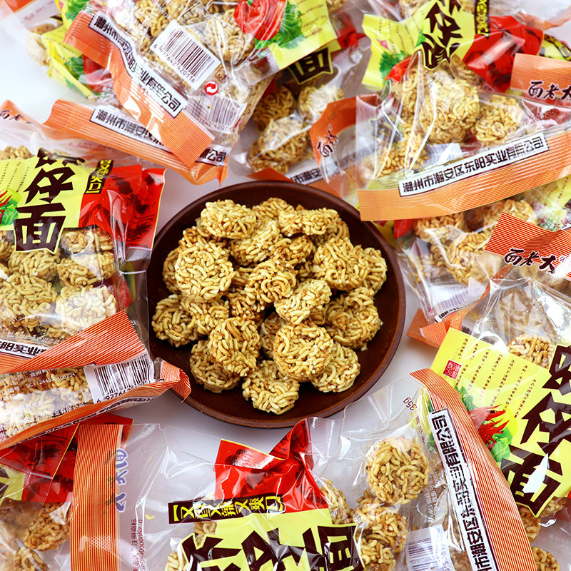 Shrimp noodles dry eating ramen balls childhood nostalgic 80s post-80s palm crisp snack leisure zero food staying up late packaging