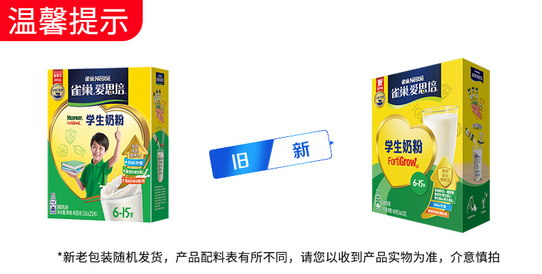 Nestlé primary and middle school students' milk powder 400g * 2 boxes of children's adolescent nutrition March, 22