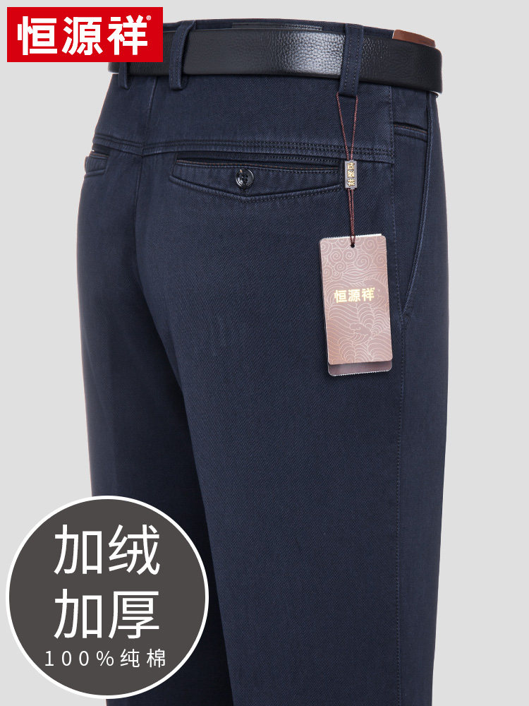 Constant Source Xiang Flannel Thicken Jeans Men's Winter Pure Cotton Winter New Business Casual High Waist Loose Pants