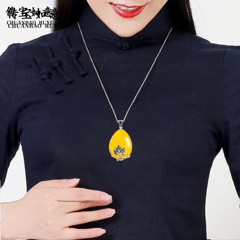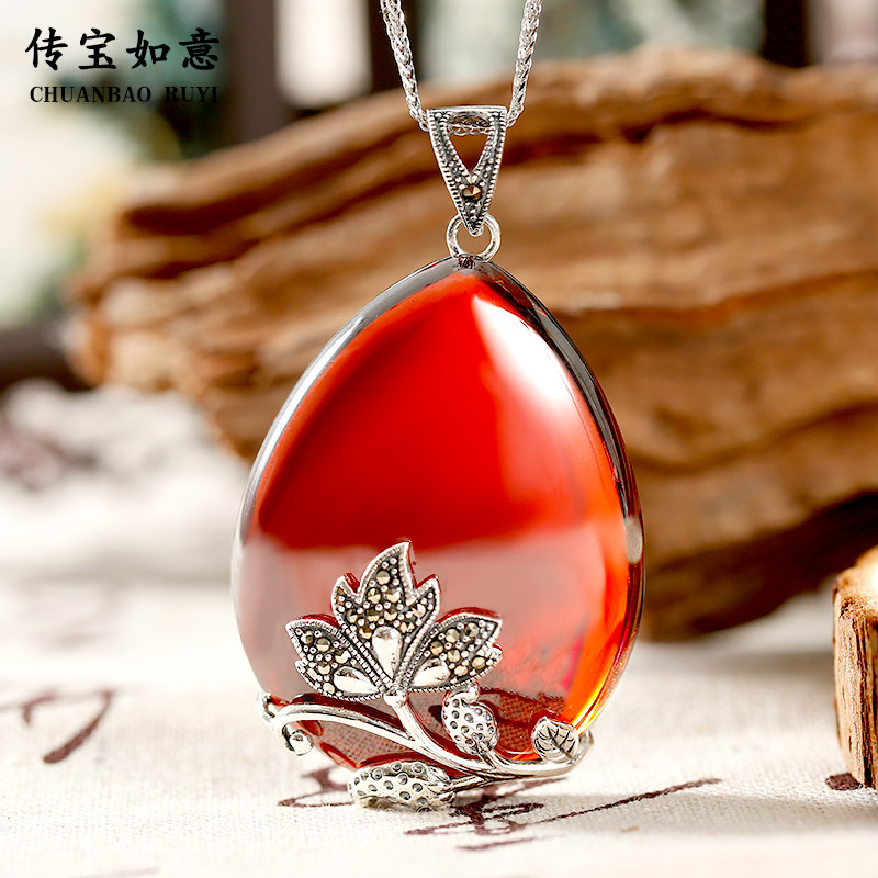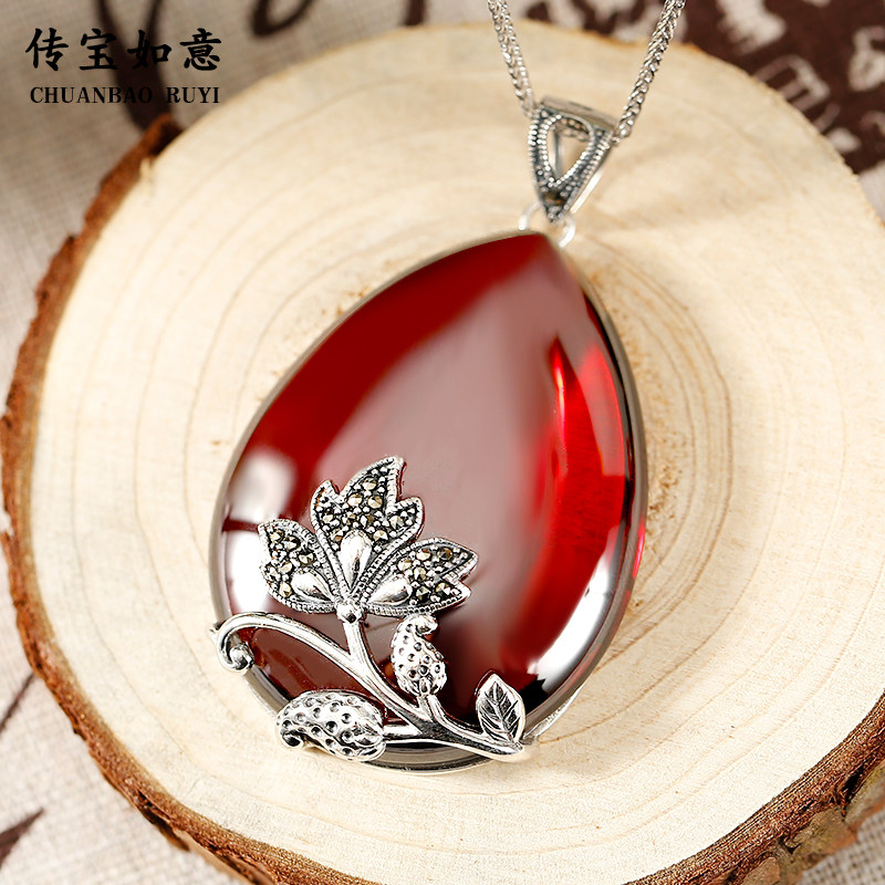 S925 Source silver gold cord red harvest pendant female national female female female wind silver jewelry Taiyun retro necklace sweater chain chain