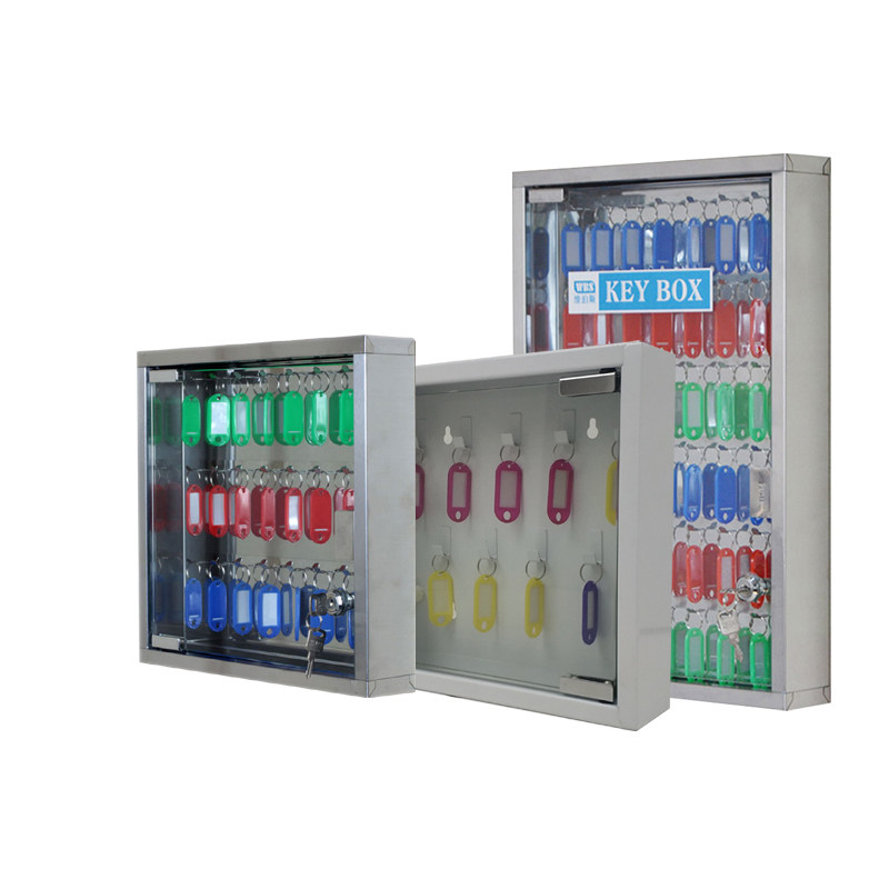 Wall-mounted vehicle hotel fire special glass door stainless steel multi-position lock key storage box storage box cabinet card