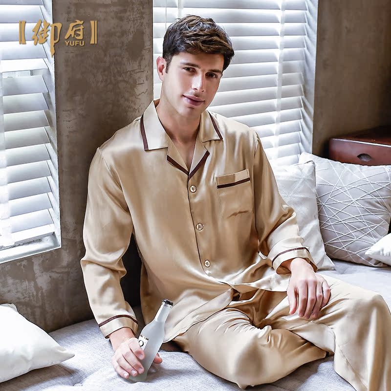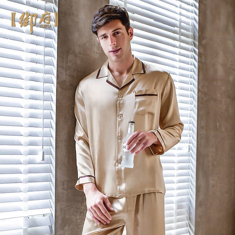 Mifu New Men Real Silk Sleeping Long Sleeve Clothes Two-piece Style Suit Spring Autumn Mulberry Silk Pyjamas Pure Color Real Silk Stay-at-home Clothing