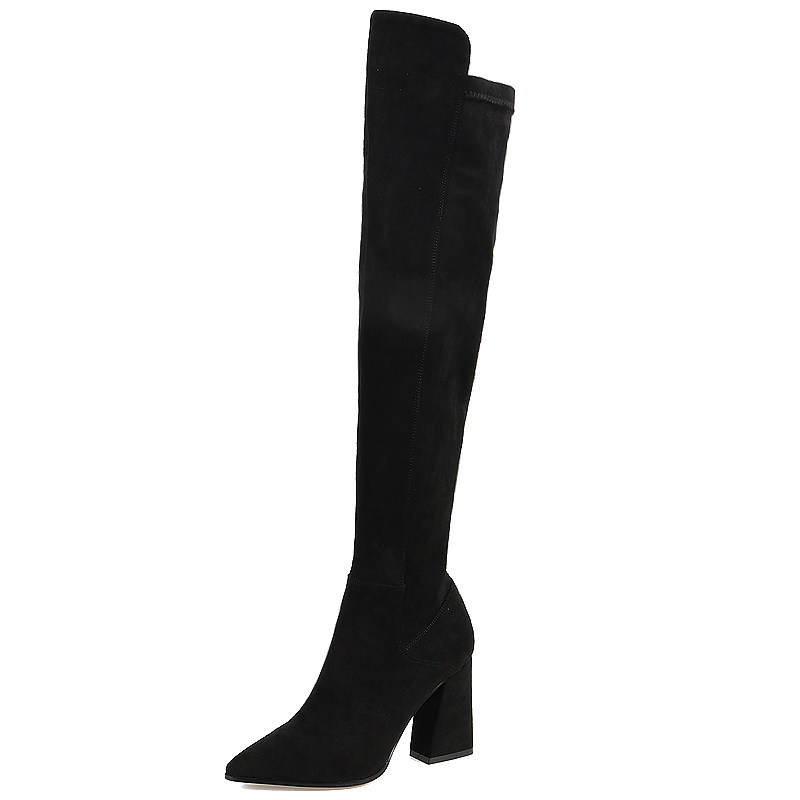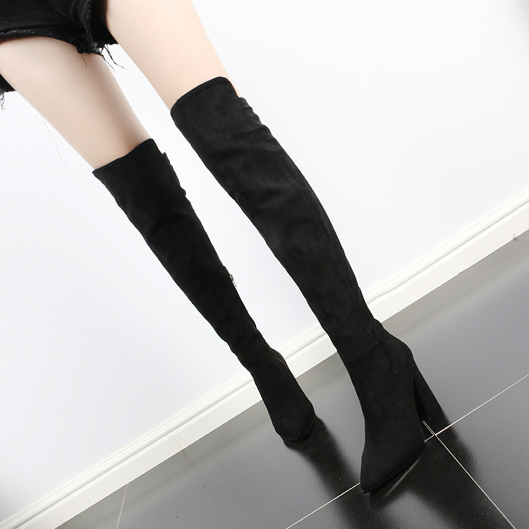 Tide 2023 autumn and winter new knee boots female high and long cylinder elastic boots tip thin and thin cotton boots