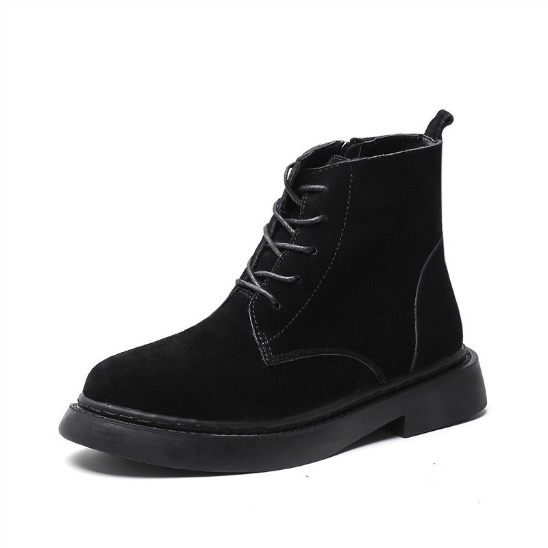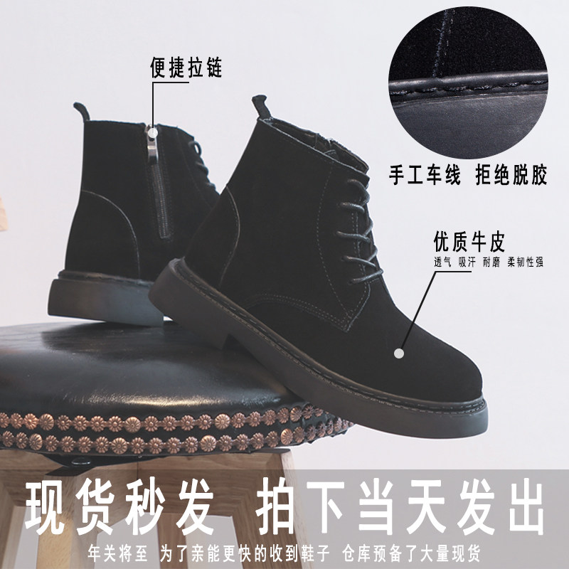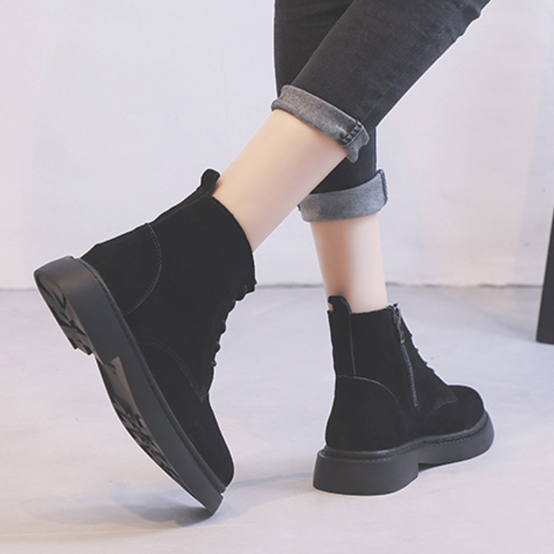 Tide brand 2022 autumn and winter new leather British Martin boots female students all-match net red plus velvet cotton shoes flat ankle boots