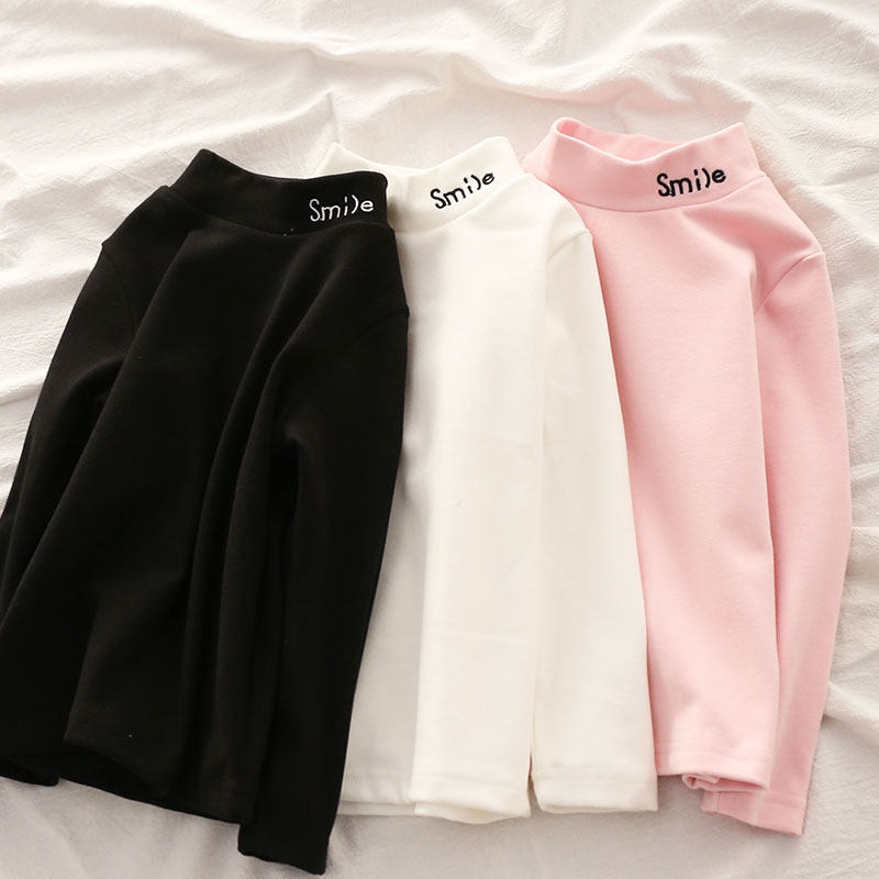 Children semi-high collar bottom shirt pure cotton polo baby 2020 winter dress ultra-slung blouses girl long sleeve t high collar t-shirt
