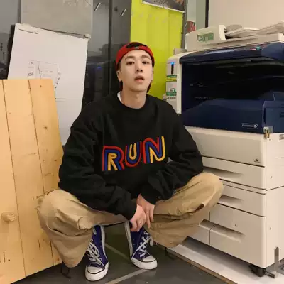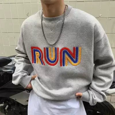 Autumn crew neck thick cotton T men's tide ins hip-hop loose Port wind spring and autumn jacket trend Korean version wild without hat