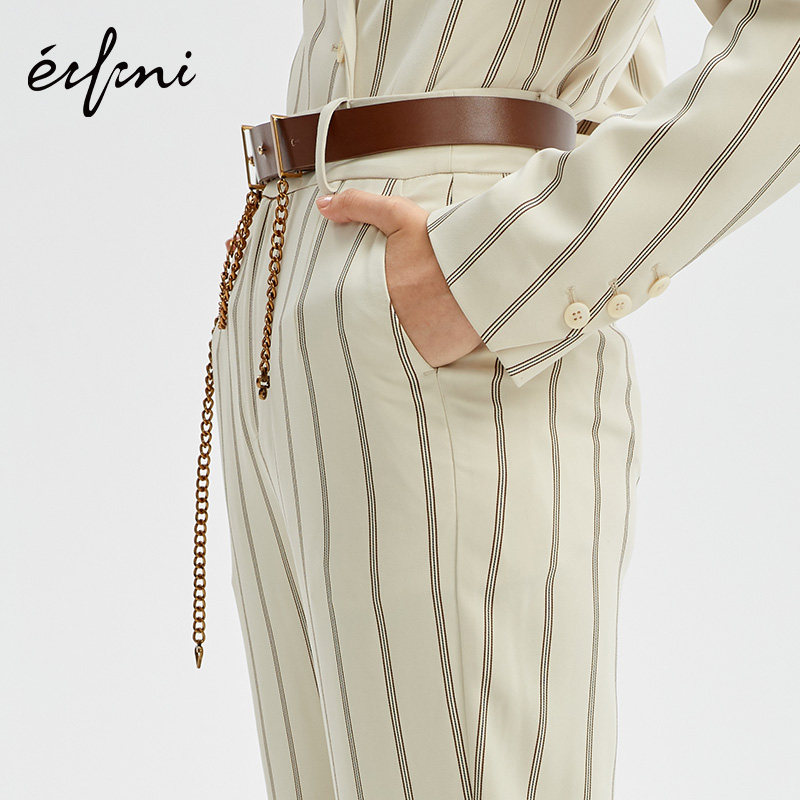 Paris Fashion Week Eve pants women's new winter fashion temperament straight pants striped casual pants women
