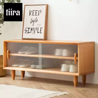 The sliding door pure solid wood shoe cabinet can be seated at the entrance of the Nordic log entry door short shoe rack for shoe stool