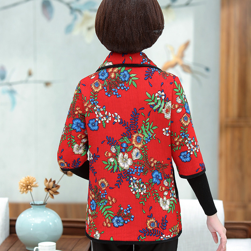 Middle-aged women's thickened mid-sleeve vest cotton coat jacket horse jacket cotton suit Middle-aged mother's winter dress plus size