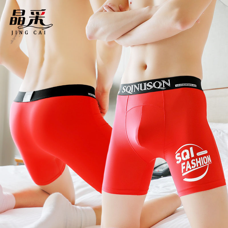 Tide brand ice silk men's underwear flat angle extended style personality anti-wear legs running tight boxer underpants youth trousers