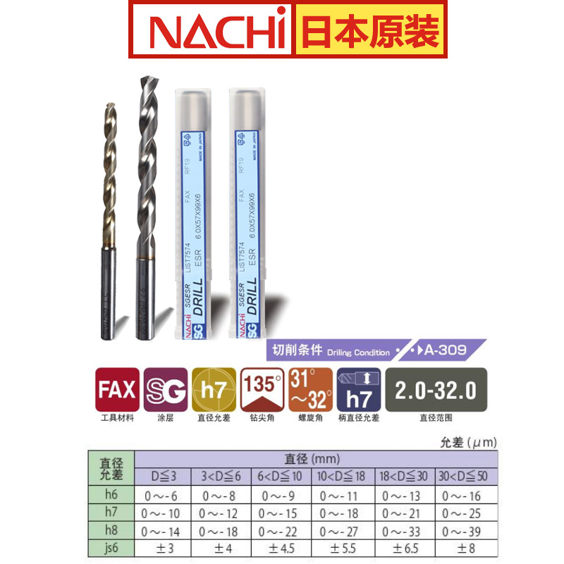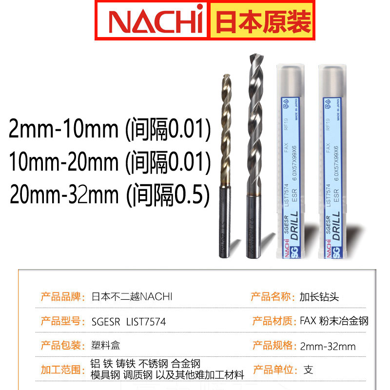 NACHI Fujitsu SG powder metallurgy steel drill bit twist drill bit L7574P super hard material extended drill bit