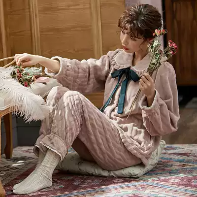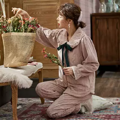 Princess Mark pajamas female coral velvet autumn and winter thickened warm Korean cute flannel warm home suit