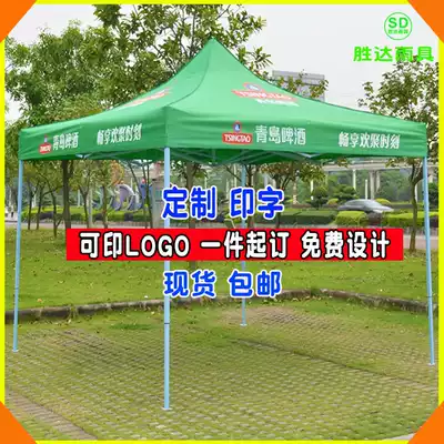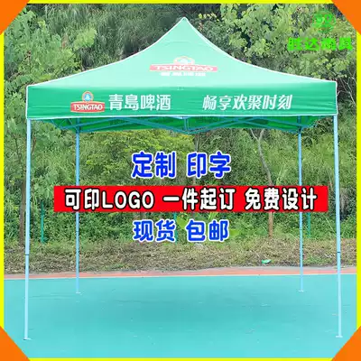 Tsingtao beer outdoor sunshade canopy late-night snack stall four-corner umbrella Beer event publicity advertising tent customization