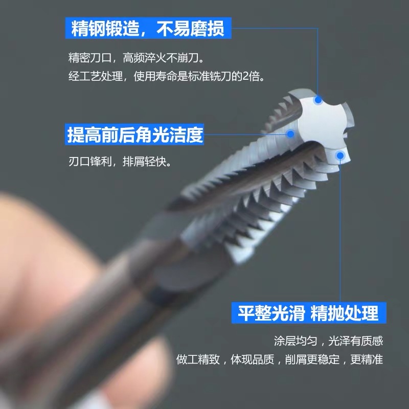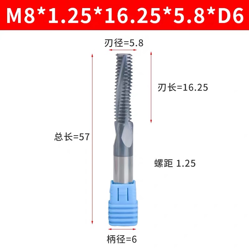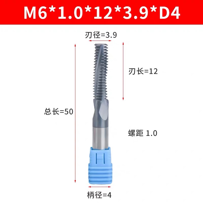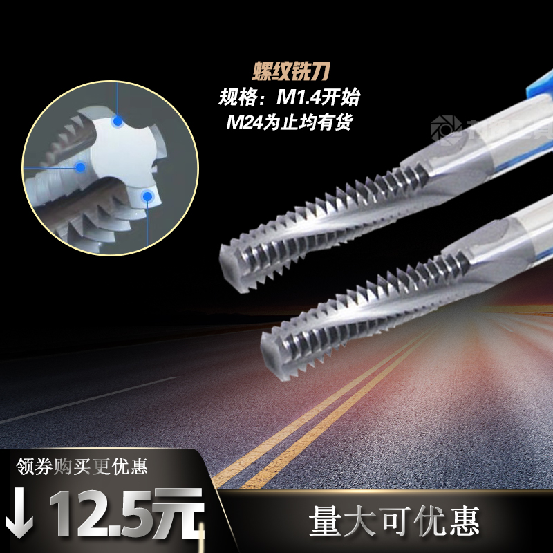 Tungsten steel threaded milling cutter M1 4 M1 6 M2 M3 M3 to M20 specs complete with black TINA coating
