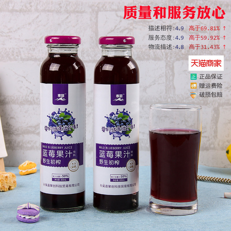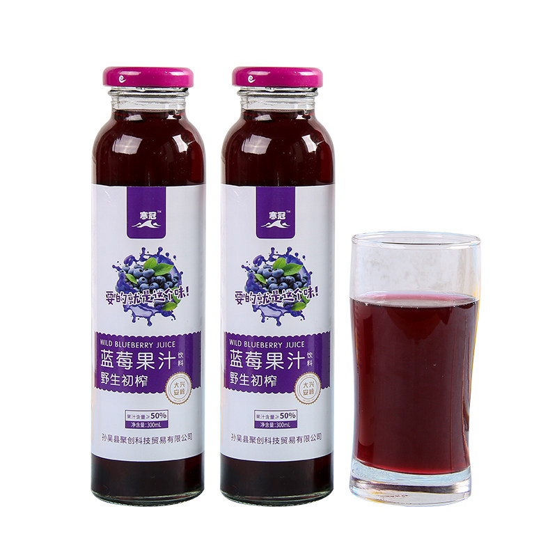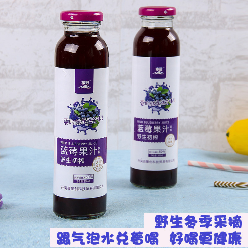 Cold Crown Daxing Anling Wild Blueberry Juice Glass Bottled Fruit Juices Drink Whole Boxes 300ml * 6 Bottles