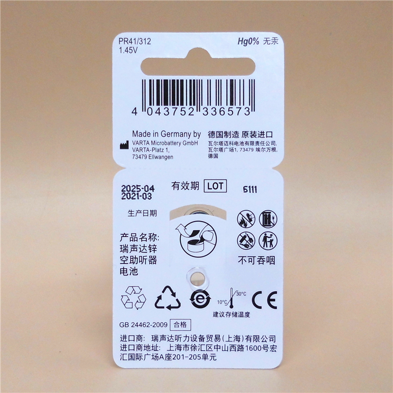 German imports ReSound GN Rutsal A312 Number of hearing aids without mercury zinc air batteries 1 45V PR41