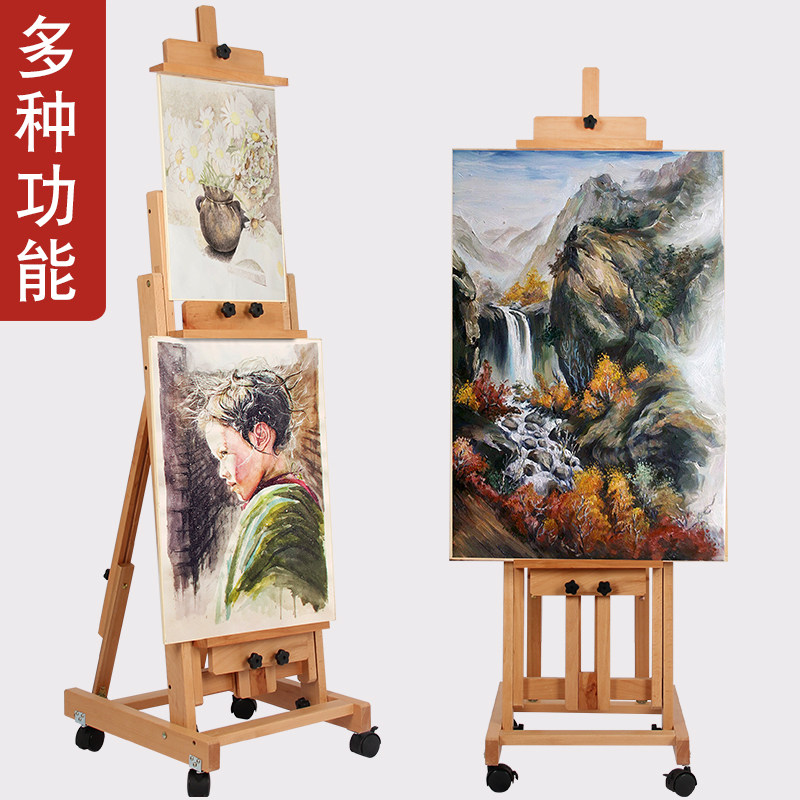 German imported beech wooden easel level standing dual-purpose multi-purpose lift folding easel artboard set oil painting Chinese painting art students special real estate sales department real estate advertising display large floor shelf