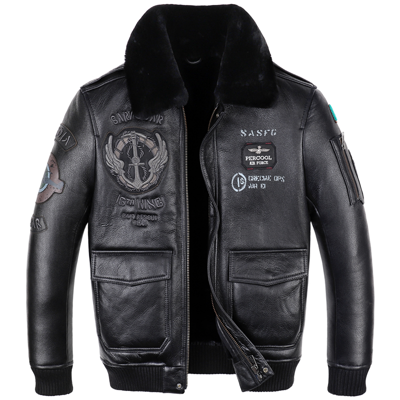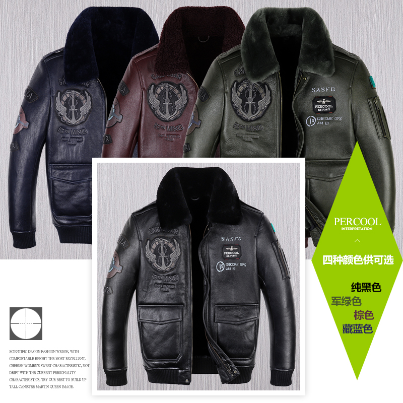Australian Fur Pilot Leather Jacket Genuine Leather Men's Sheep Leather Winter Lapel Fur Jacket Thick