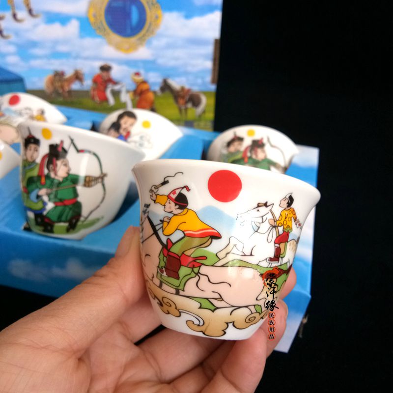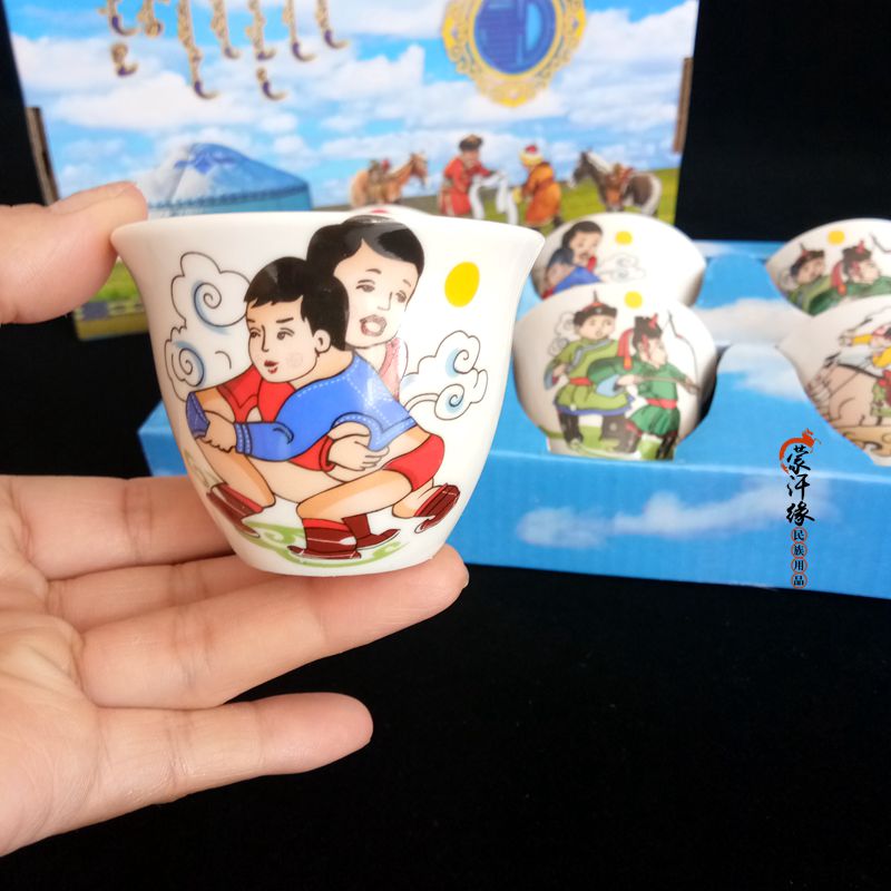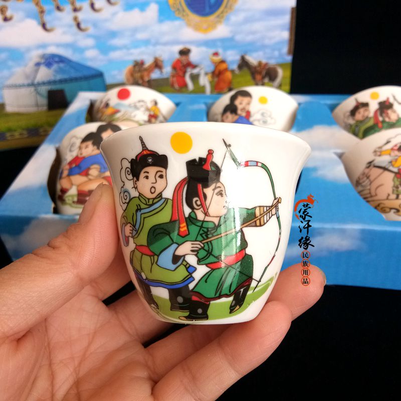 Mongolian craft gifts decorated with wine glasses, ethnic toast cups, souvenirs, Mongolian three-skill cups, 2 pieces