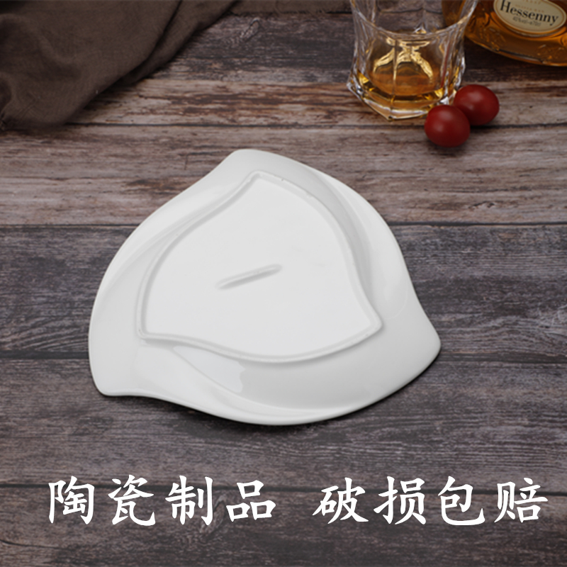 Triangle plate ceramic pure white hotel restaurantRestaurant dishes pavement hot dishes after cooking tableware